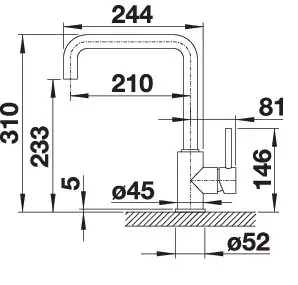 Blanco Mili keukenkraan mat-zwart enkele hendel draaibare uitloop haaks