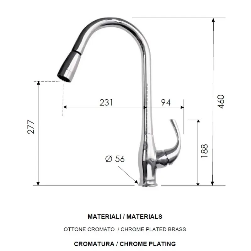 - Daniel Design eengreeps keukenkraan chroom hoge draaibare uitloop uittrekbare handdouche