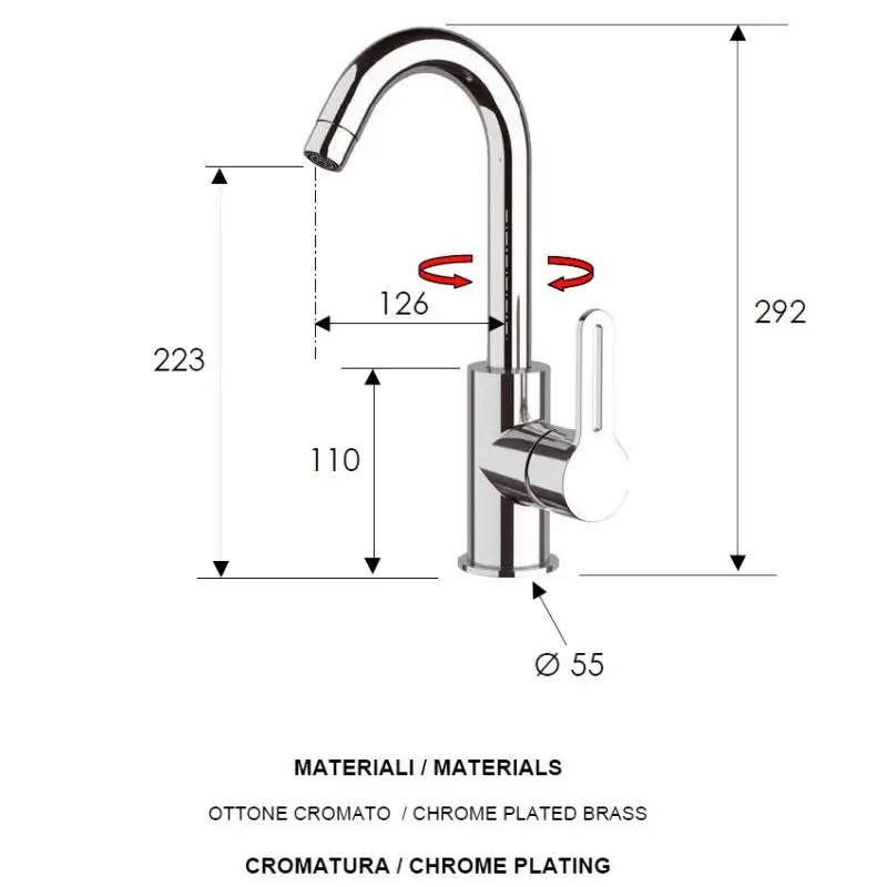 - Hoge draaibare uitloop voor optimale bereikbaarheid