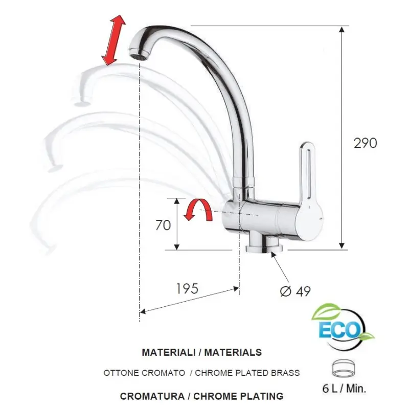 - Hoge draaibare uitloop voor optimale bereikbaarheid