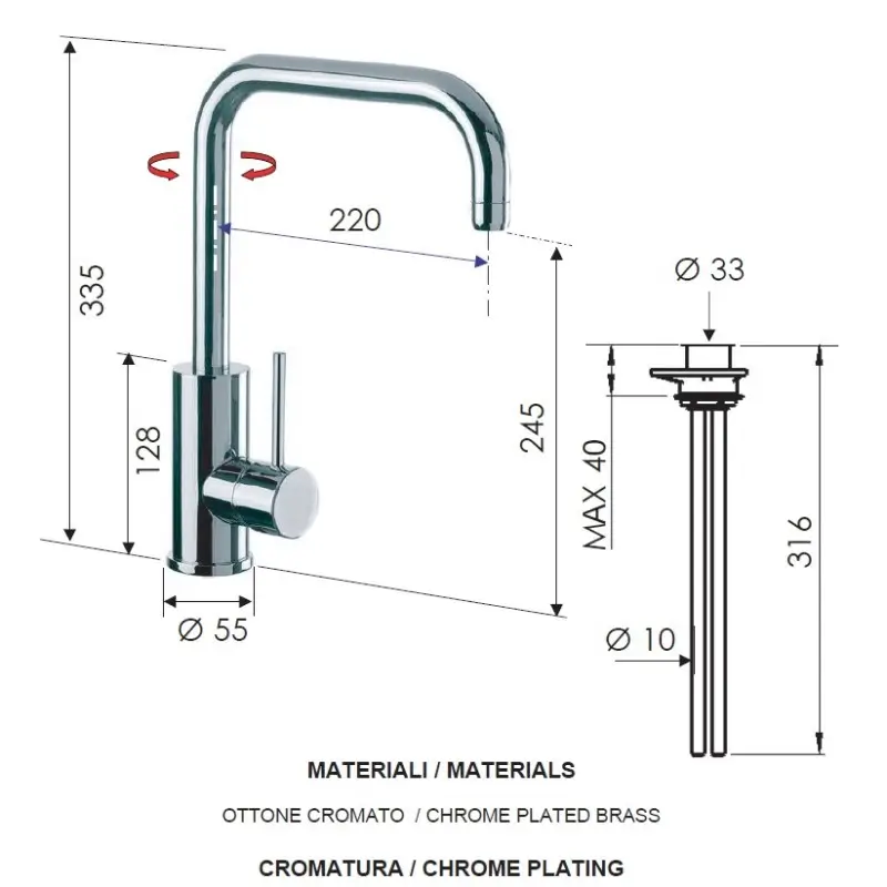 - Hoge draaibare uitloop voor optimale bereikbaarheid