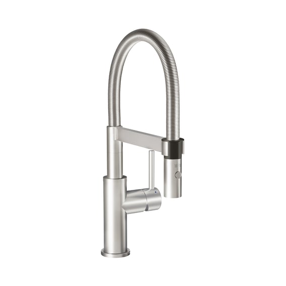 Villeroy & Boch Steel Expert Compact Window keukenmengkraan RVS veer uitloop draaibaar uittrekbaar 2 standen edelstraal finish 929900LC is vervaardigd uit 100% roestvrij, loodvrij en zuurvast RVS, wat zorgt voor een langdurige bescherming tegen kalkaanslag en corrosie. De geborstelde afwerking van deze kraan weerstaat vingerafdrukken en vetvlekken, waardoor het onderhoud eenvoudig is. De uittrekbare handdouche biedt maximale bewegingsvrijheid en gebruiksgemak tijdens het afspoelen van gerechten. Met de kristalheldere laminaire straal kunt u vrijwel spettervrij fruit en groenten wassen, terwijl de krachtige en efficiënte straal ideaal is voor het reinigen van pannen en potten. De ingebouwde omschakelfunctie maakt het eenvoudig om snel te wisselen tussen verschillende straaltypes. De kraan heeft een draaibereik van 120°, wat stoten bij installatie nabij een muur voorkomt en ongewenst druppelen op het aanrecht minimaliseert. De hevelrotatie van 45° in elke richting maakt het mogelijk om koud en warm water eenvoudig te regelen. U kunt de doorstroming en temperatuur nauwkeurig instellen met één hand. Bovendien biedt de kraan grote hygiënevoordelen door de terugstroompreventie, waardoor vervuild water niet terugstroomt in de drinkwatervoorziening. De hoogwaardige, duurzame keramische cartridge en flexibele, smaakneutrale aansluitslangen dragen bij aan de kwaliteit van het product. Tot slot zorgt het bevestigingssysteem met hoogwaardige en gestandaardiseerde componenten voor een snelle en eenvoudige installatie.