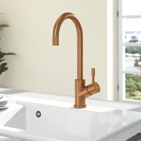 Villeroy & Boch Umbrella eenhendel keukenmengkraan draaibaar brons mat 92530004 is een hoogwaardige keukenmengkraan die fijne gebruikseigenschappen en stijl combineert. Deze kraan beschikt over een comfortstraal, die een zachte, met lucht verrijkte waterstraal biedt voor een aangename gebruikerservaring. Het armatuurlichaam is volledig draaibaar met een draaibereik van 360°, wat het gemakkelijk maakt om ook bij hoge vaat te manoeuvreren. De soepel werkende keramische cartridge zorgt voor een betrouwbare en langdurige werking. De koudwaterinstelling in het midden bevordert een verminderd warmwaterverbruik, wat bijdraagt aan een duurzame levensstijl. De bedieningshendel is ontworpen met een verticale basispositie, waardoor stoten tegen de achterwand wordt voorkomen. Bovendien is de kraan voorzien van flexibele aansluitslangen, wat de installatie vergemakkelijkt. Deze keukenmengkraan is een uitstekende keuze voor wie op zoek is naar een combinatie van gebruiksgemak en elegantie in de keuken.